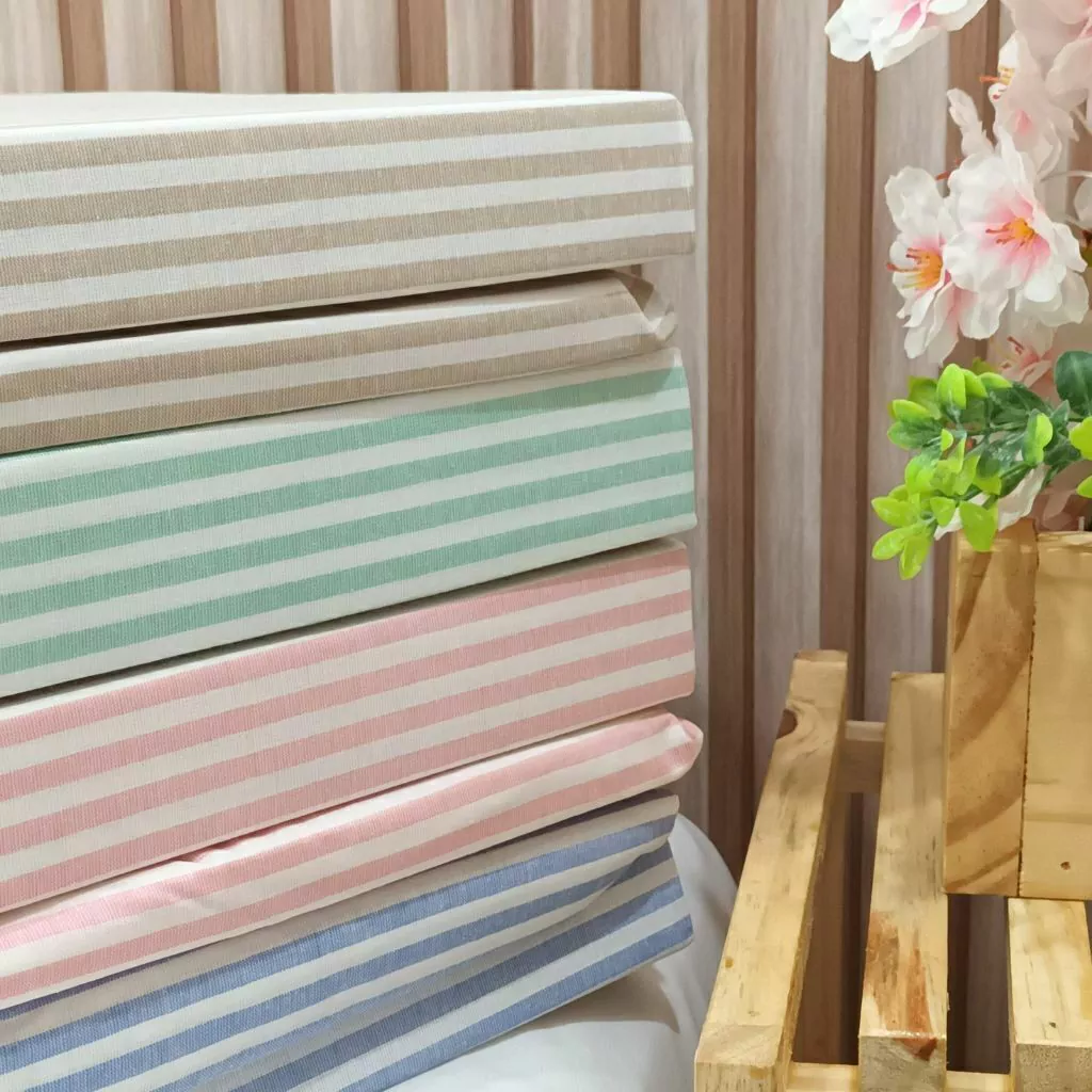 Lençol de se cobrir com listras em cores Teka, para boas noites de sono e bons momentos de descanso.